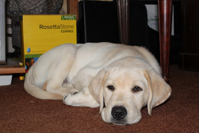 The best of luck to Rudy; and to make this post even better... the raiser that picked Brandon up for me; also stopped by the training kennel and snapped a quick photo of my "energetic" boy...